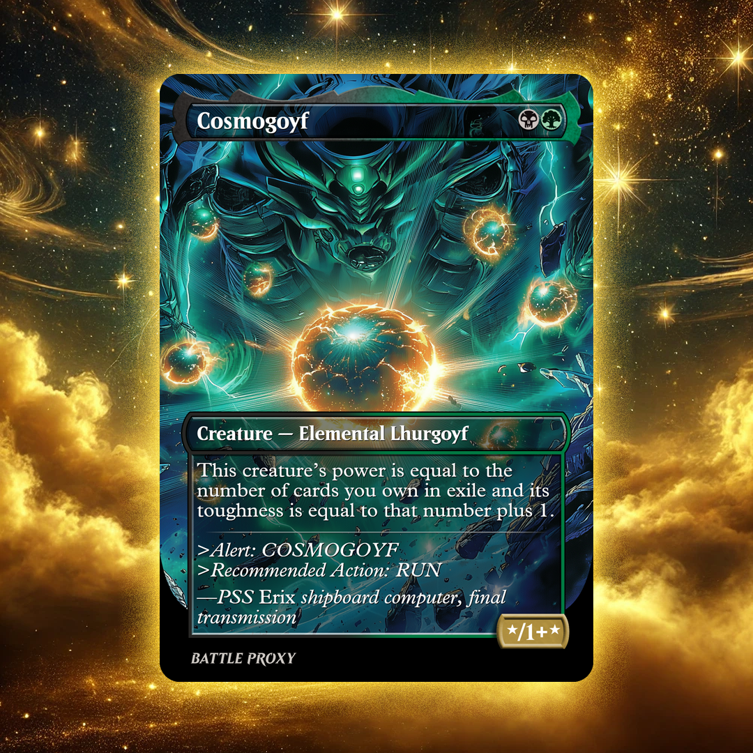Check out our custom Cosmogoyf proxy from the Edge of Eternities series! It is perfect for commanding players as long as your playgroup tolerates using proxies.